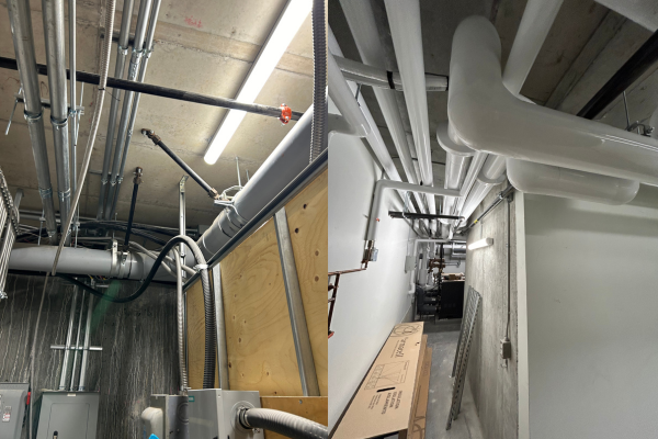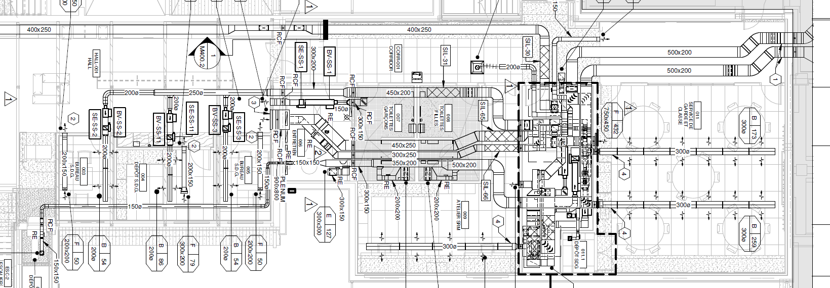 Notre rôle en tant que firme spécialisée en parasismique est d’aider les entrepreneurs à trouver des solutions pour permettre aux éléments non structuraux tels que la tuyauterie, les conduits électriques, les plafonds suspendus, les conduits de ventilation et leurs équipements de suivre les mouvements de la structure dans les 3 axes et de leur permettre de rester en place.